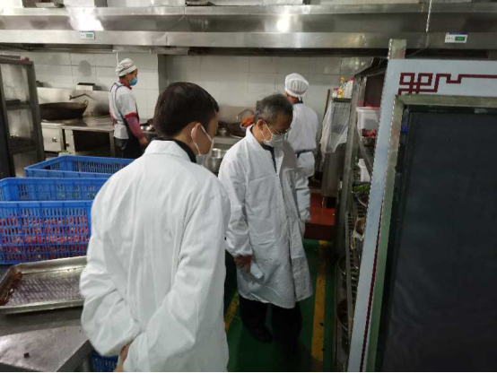 督导组还实地检查了学生食堂的卫生,认真听取了学生食堂负责人关于学生食堂常态化疫情防控措施的汇报,重点询问了学生的体温检测、食堂工作人员的体检、疫情防控培训、错峰就餐、原材料索票索证等相关情况。