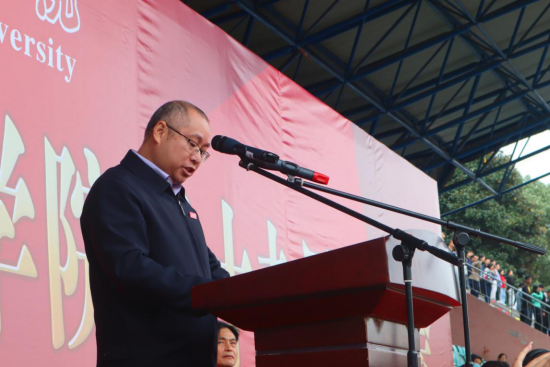 陈春生致闭幕词,他代表学校和运动会组委会,向取得优异成绩的代表队和运动员表示热烈的祝贺,向为本次运动会付出辛勤劳动的全体工作人员、全体运动员、裁判员,以及关心和支持本次运动会的所有单位和师生员工表示衷心的感谢。陈春生指出本届运动会充分体现了开元师生团结奋进、顽强拼搏的精神风貌。他强调体育强则中国强;青年强则中国强,学校将响应习近平总书记在今年9月份召开的教育文化卫生体育领域专家代表座谈会上的要求,深入贯彻落实全国教育大会和中央《关于全面加强和改进新时代学校体育工作的意见》精神,努力培育德智体美劳全面发展的社会主义建设者和接班人。他要求全体师生将敢于挑战、永不放弃的体育精神带到学习和工作中去,为建设“特色鲜明区域优先的综合性应用型大学”贡献力量。