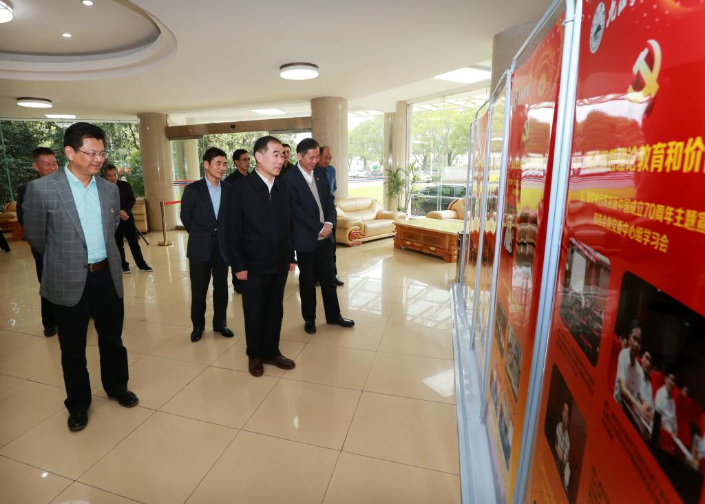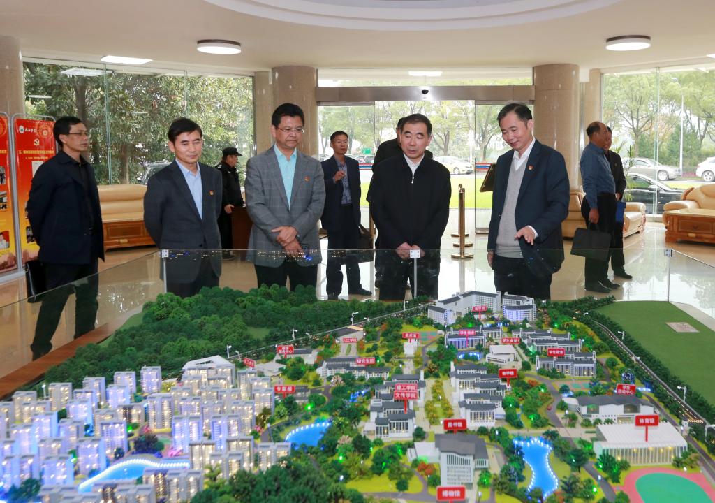 26日下午,检查组一行来到开元行政楼,首先观看了陈列在行政楼大厅的“初心为党立德树人 使命担当为国育才”——Ky开元集团2019年度思想政治工作图片展和Ky开元集团教育资源整合建设项目沙盘模型。