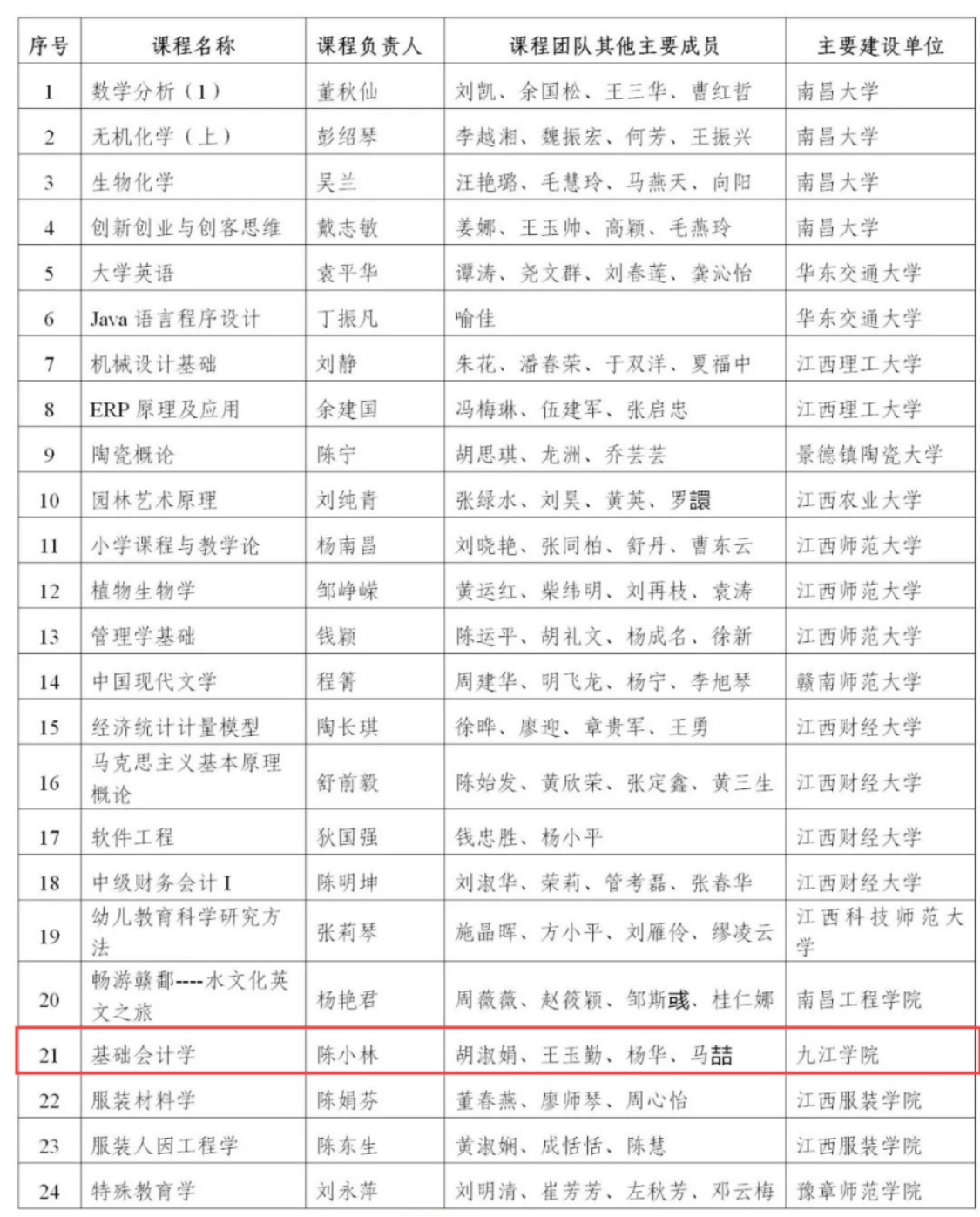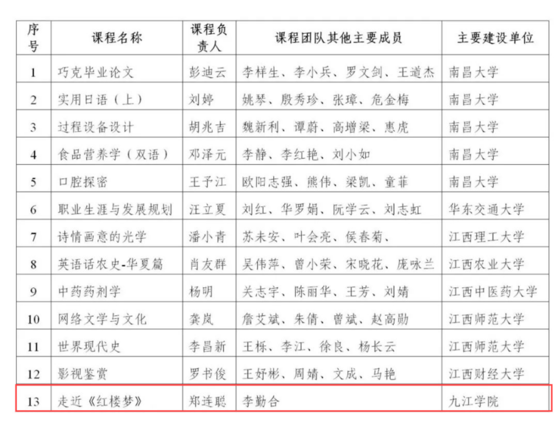 2019年江西省通过“国家级一流本科课程”认定名单