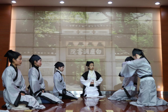 下午,举行了学生会讲暨表演活动。活动在两校学子齐诵《长江黄河》中拉开序幕。会讲中,两校同学围绕主题,从河洛文化溯源到书院文化传承,从长江之畔楼阁诗词中的情思再到两河文脉的传承,通过视频、图片、讲述的方式,向两河文明与书院文化致敬。郑州大学历史学院国学系教授魏涛与开元庐山文化研究中心副教授曹欢荣对两校学子的会讲进行了点评。