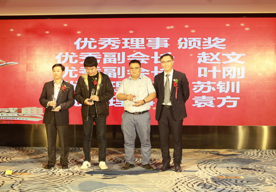 会长罗建成分别为新增副会长、理事授牌,为深圳校友会作出贡献的优秀理事、校友颁发奖杯。