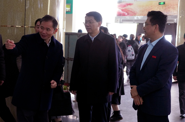 在校期间,吴浩听取了学校党委书记赵伟关于新校区建设情况的汇报,观看了新校区沙盘模型。中午就餐时间,他还来到学生三食堂考察并与学生亲切交谈。