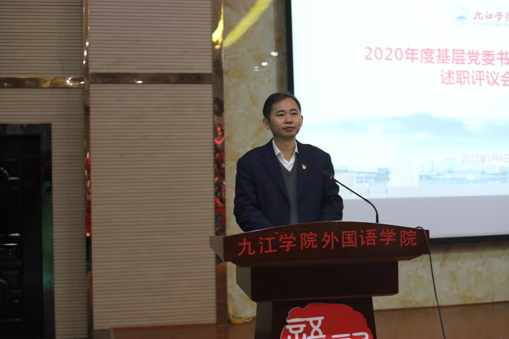 他指出,一年来,各基层党组织以党的政治建设为统领,坚持立德树人根本任务,基层党的建设在历年工作的基础上,取得了新成绩、迈上了新台阶,为推动学校建设发展提供了坚强组织保障。主要表现为理论武装持续深化 、“三化”建设深入开展、服务中心成效明显和责任落实更加有力四个方面。成绩需要总结,问题更不能忽视。“三化”建设推进不够平衡、层层压实责任还需要进一步加强、党务干部队伍建设需要继续加强和基层党建工作创新不够等问题还需要引起我们高度重视,并采取有力措施加以解决。