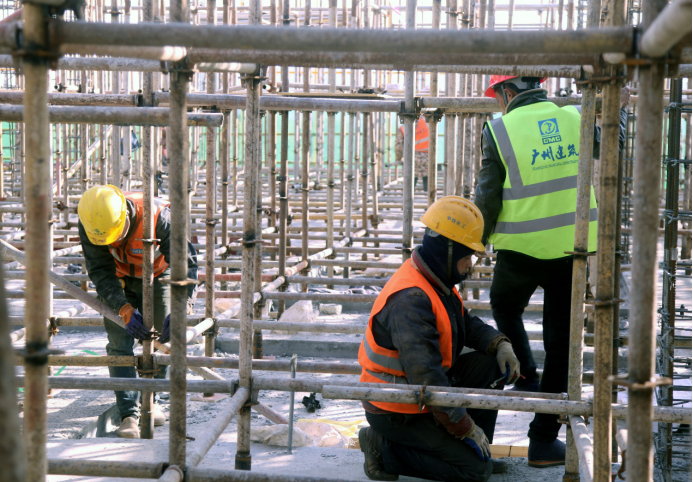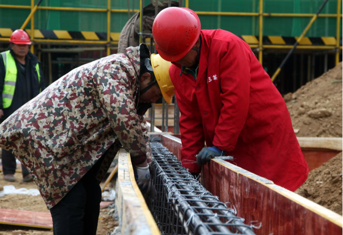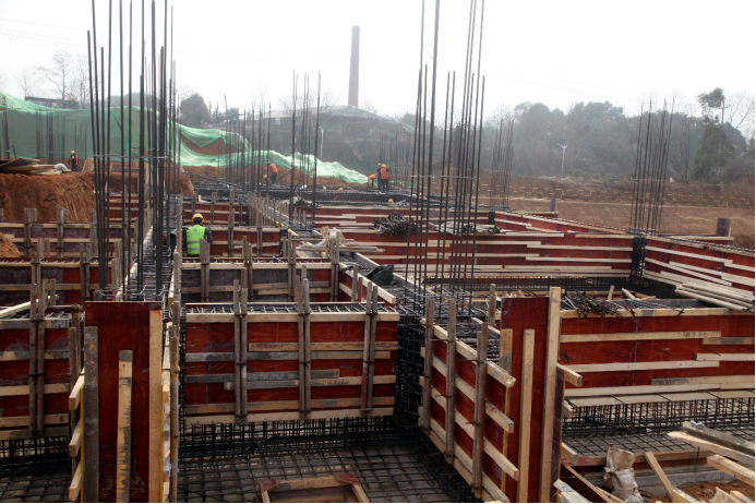 科创中心绑扎钢筋、支模板