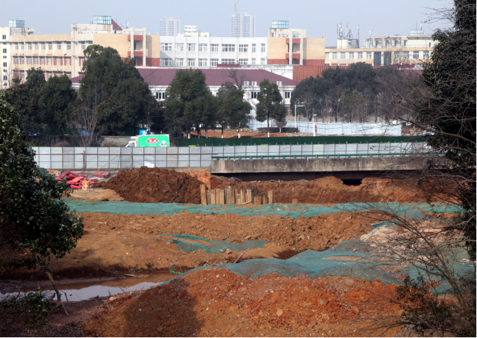 位于逸夫图书馆旁连接丹枫园和紫薇园的时光隧道正在进行土方工程施工