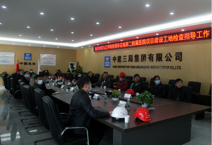 在二附院建设工地,班子成员们实地调研了二附院的建设情况,随后在建设工地会议室听取了建设方的汇报,从项目概况、目前进展、工作管理过程、下阶段工作计划四方面了解二附院的建设情况。