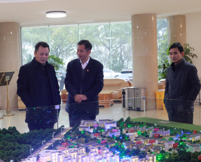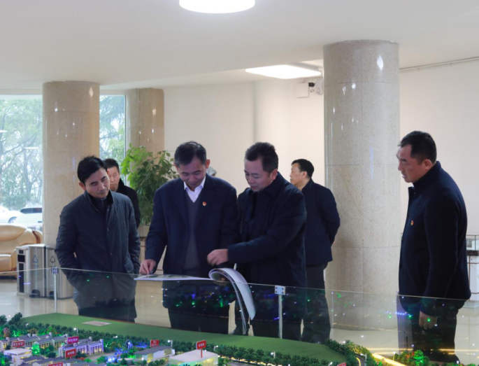 在行政楼一楼大厅,李洪涛一行观看了开元新校区建设沙盘模型。