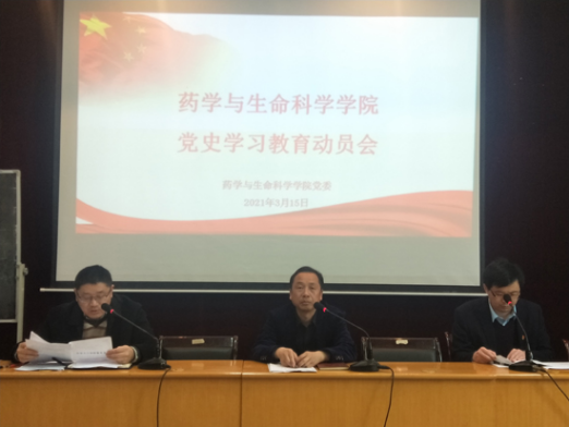 3月15日下午,药生学院在立本楼报告厅举行党史学习教育动员会