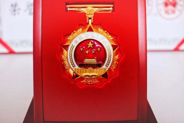 (程招星在北京人民大会堂被授予的全国劳动模范勋章)