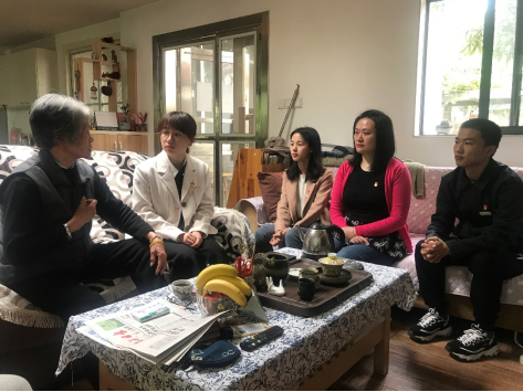 之后,师生一行拜访了干休所的段奶奶。老人家退休前,是党的革命骨干,为党的事业付出青春,退休后不忘初心,坚持不懈发挥余热,将党的精神践行于生活。作为一名具有60多年党龄的老党员,段奶奶对师生们的学习精神感到十分欣慰,她说:“我们那一辈,历经千辛万苦有了现在的中国,如今有你们这样不忘初心的接班人,我们付出再多也是值得的。”