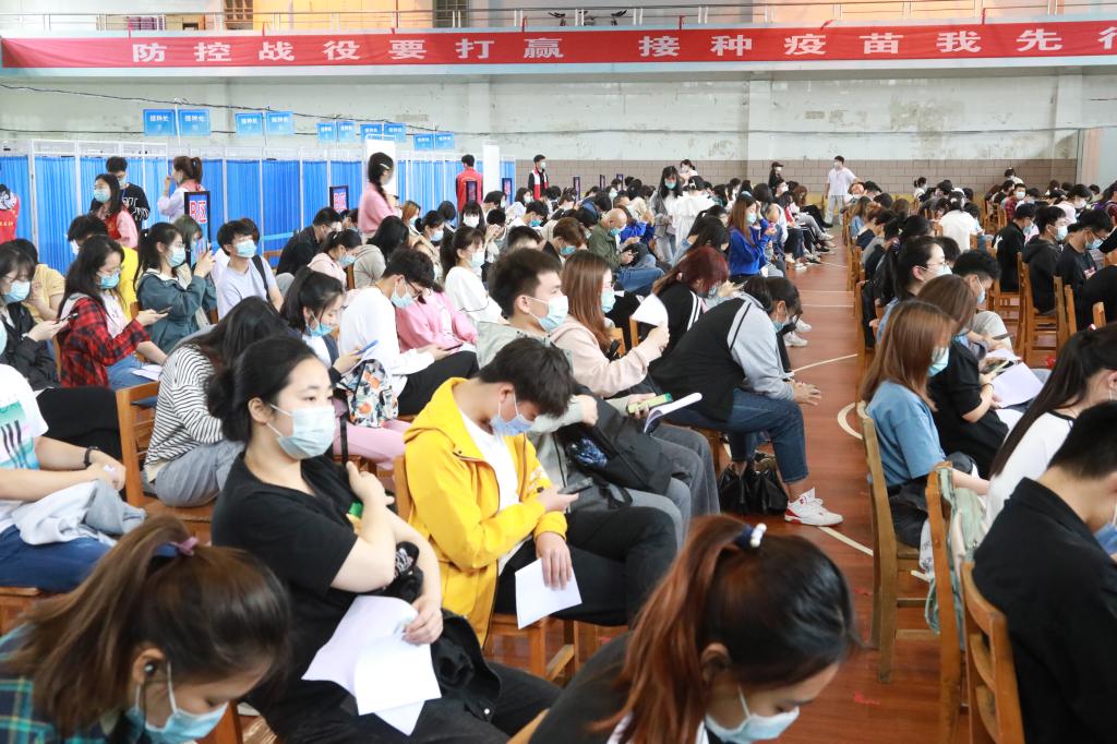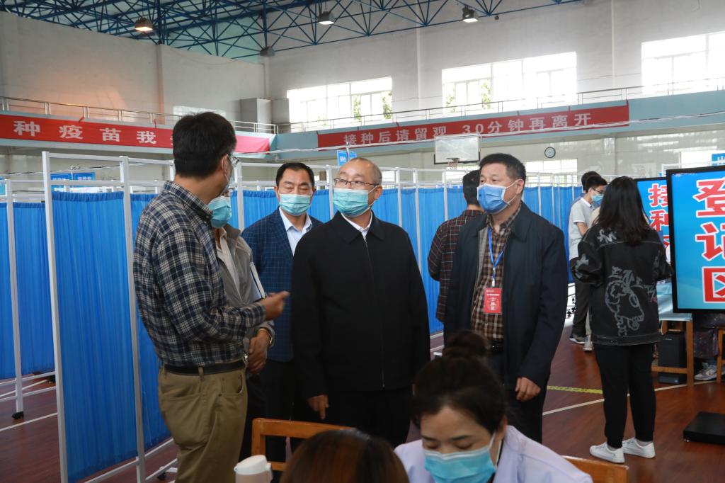 5月17日,校党委书记赵伟和校长陈小林来到主校区南区田径馆,现场检查指导开元新冠疫苗接种工作。