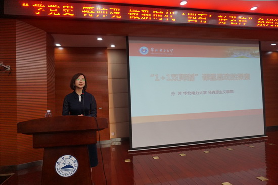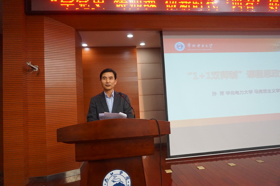 报告会上,华北电力大学孙芳教授全面系统地介绍了课程思政概念的内涵及存在的问题;深入阐述了“1+1”双师制课程思政模式的理念、意义和具体组织实施过程,详细介绍了双师制的“显隐”结合、“师”的四个来源、课程思政的“四选原则”,并根据具体教学案例介绍了课程思政过程中如何从云端落至大地的如琢如磨、精心组合、反复推敲、深度融合的探索过程。