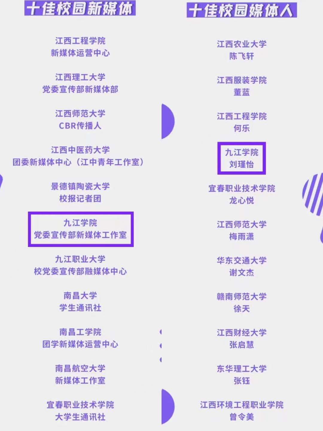 近年来,新媒体工作室先后荣获“全国高校新媒体评选最佳人气奖”、“江西省十佳校园新媒体奖”、“江西省十佳校媒人”和“九江市好新闻奖(新媒体类)”等奖项。