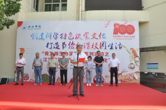 夏启国为美食节开幕式致辞。他充分肯定了学校后勤管理处认真践行“学党史、悟思想、办实事、开新局”的工作要求,着力为师生群众办实事、解难题。他对一年来饮食服务中心在各类比赛和活动中取得的成绩表示高度认可并希望饮服中心继续严把质量关、管理关,努力创建管理服务双一流,为学校的发展再创佳绩,再立新功。