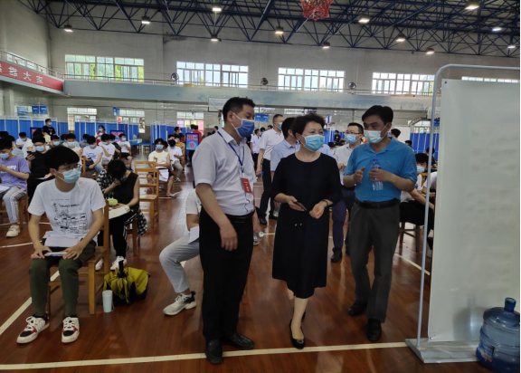 “疫苗接种、人人有责,应接尽接、应快尽快。”学校领导高度重视此次新冠疫苗接种工作,坚持把师生员工生命健康安全放在首位。校党委书记赵伟和校长陈小林多次到现场检查指导,分管领导杨耀防副校长等也多次到现场布置与调度临时接种点相关工作。为确保学校疫苗接种工作迅速安全、有序、高效开展,学校党政办、宣传部、国资处、学生处、团委、信息中心、后勤管理处、附属医院、保卫处、校医院等部门以及青年志愿者协会,在疫苗接种工作开始前会议研究并制定了详细的疫苗接种工作方案,成立了综合办公室、疫苗接种组、应急救治组、安全保障组、场地设置组、信息技术组、清洁消杀组、接种联络组、宣传舆情管理组和志愿服务组等十个工作小组。国务院联防联控机制驻江西工作组和江西省新冠疫苗接种驻点督导组第二组,分别来校检查指导开元新冠病毒疫苗接种工作。
