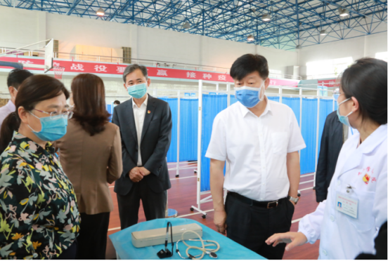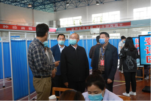图为国务院联防联控机制小组到开元临时接种点指导接种工作