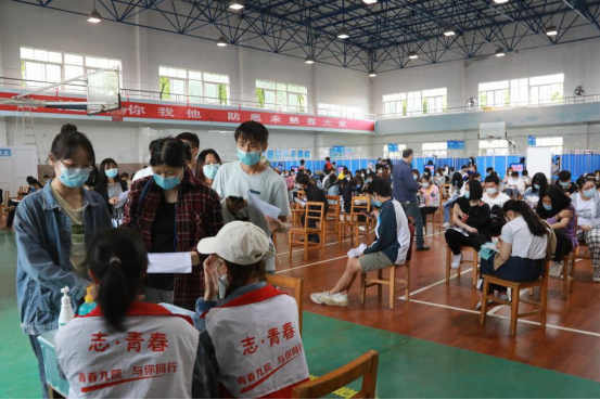 6月18日下午,随着南区训练馆疫苗接种点第二针新冠疫苗接种工作顺利结束,开元疫苗接种已完成5万多剂次,最高接种量一天接种6000余人。一道坚实牢固、科学有效的疫情防控屏障已经在校园里构筑起来,保护着全校师生的健康和安全。外国语学院19级姚芷玉同学表示:“作为一名入党积极分子,我要展现带头打疫苗的担当,我更为国家免费接种而感到光荣自豪。”