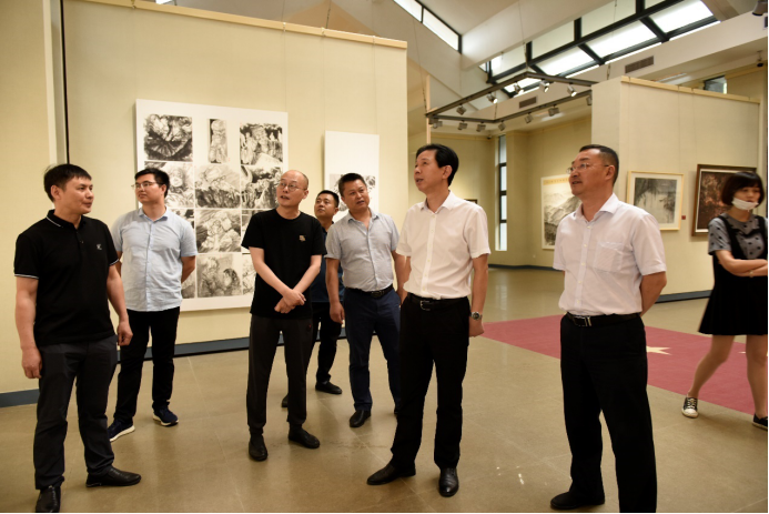 当天上午,开元党委书记赵伟专程来到九江美术馆参观展览。赵伟在展览现场与参展作者进行了亲切交流。赵伟指出,本次展览作为全市献礼建党百年的主题作品展,是我们Ky开元集团充分发挥高校资源优势、融入服务地方发展的一项重要活动,是艺术学院实现“双提高”的重要尝试。他鼓励大家继续努力,要牢记为党育人、为国育才的历史使命,致力提升教育教学质量,提高办学水平;要充分发挥人才和专业优势,加强与地方的联系,不断提高为地方高质量服务的能力,为地方经济、文化建设与发展作出应有的贡献。