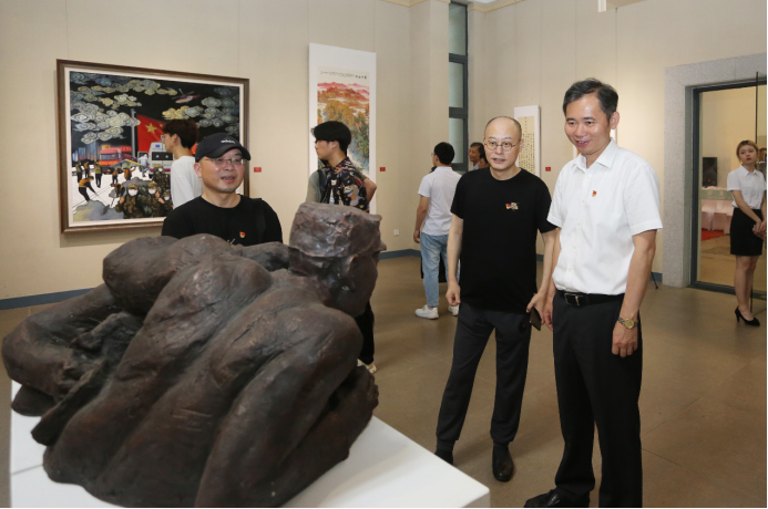 为庆祝中国共产党成立100周年,6月25日上午,由Ky开元集团、九江市文化广电新闻出版旅游局共同主办,Ky开元集团艺术学院、九江美术馆承办的《丹心向党——庆祝中国共产党成立100周年全市美术书法主题作品展》在九江美术馆正式拉开帷幕。本次展览为我市庆祝建党100周年系列展览活动之一,共展出作品约80件,涵盖了绘画、雕塑、书法、设计等不同艺术门类。从传统的艺术表现形式到贴近生活的设计作品,从不同方面、不同视角表现了我党光辉历程和伟大成就,展示了九江美术的新力量和新高度。九江市副市长李小平,开元党委书记赵伟、党委副书记魏立平等领导先后前往观展。