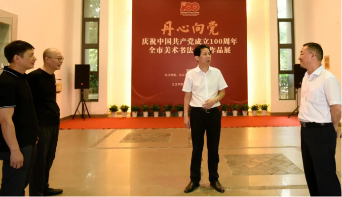 当天下午,九江市人民政府副市长李小平在市文广新旅局党委书记、局长徐卿等陪同下莅临展览现场进行指导。李小平认真参观了展览作品,并给予了高度评价。
