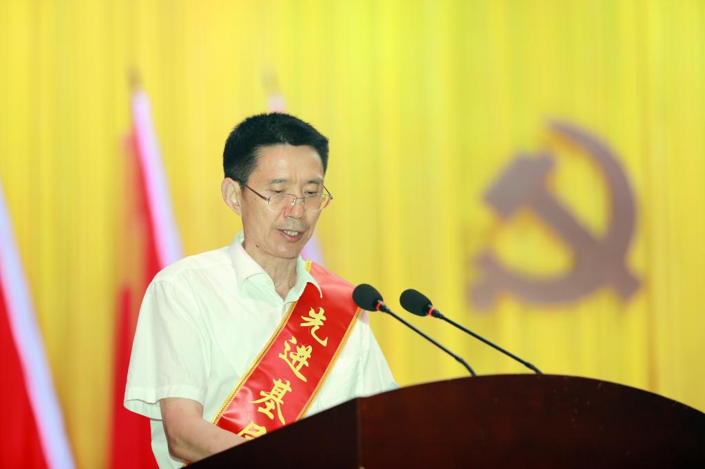 优秀教工党员代表彭虎老师向伟大的中国共产党致以最崇高的敬意。他表示,如果没有党的领导,我们的国家和民族就不可能取得今天这样的成就,在今后的工作和生活中,将继续从党的奋斗历史中汲取前进的力量,开拓进取,努力成为爱岗敬业、恪尽职守、默默奉献的共产党员。