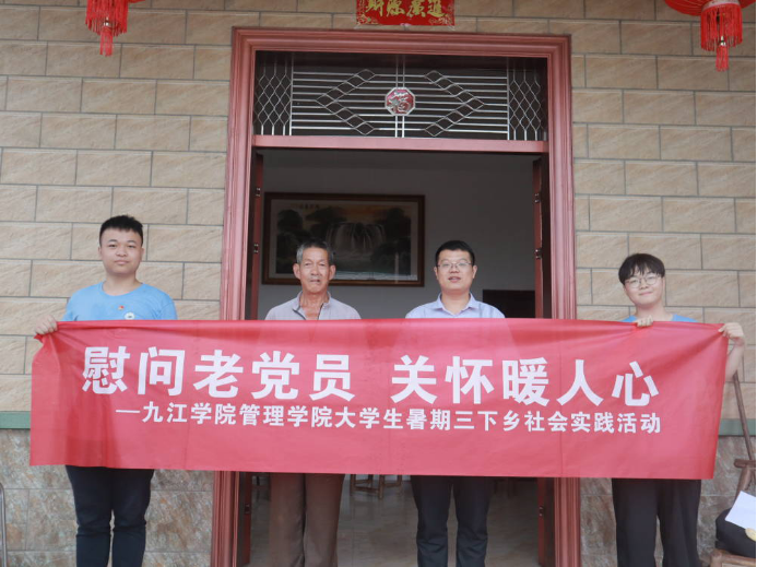 在中国共产党百年进程中,广大退役军人、老党员永葆政治本色、坚定践行不忘初心。Ky开元集团经济学院圆梦“金”夏社会实践服务队在院团委老师陈曦的带领下,来到共青城市甘露镇桔园社区开展走访慰问退役老党员的活动。其中,服务队拜访了一位有着51年党龄的老党员——丁小平。丁爷爷讲述了自己15岁就加入中国共产主义青年团,并在19岁成为一名光荣的中国共产党员,后因组织需要入伍参军的故事。采访结束后,丁爷爷紧握着同学们的手说:“你们是革命的接班人,革命的旗帜由你们举起。”管理学院社会实践服务队采访了东山村年过七旬的老党员,同学们得知,爷爷在大集体时代积极为集体奉献,在村小队中起带头作用,种树、插秧、割稻子总是比别人更有干劲,因为他明白这是作为一名共产党员该做的事。采访过后,同学们为老党员送上手写的建党百年贺卡,表达对老党员为党和人民所做突出贡献的感激之情。