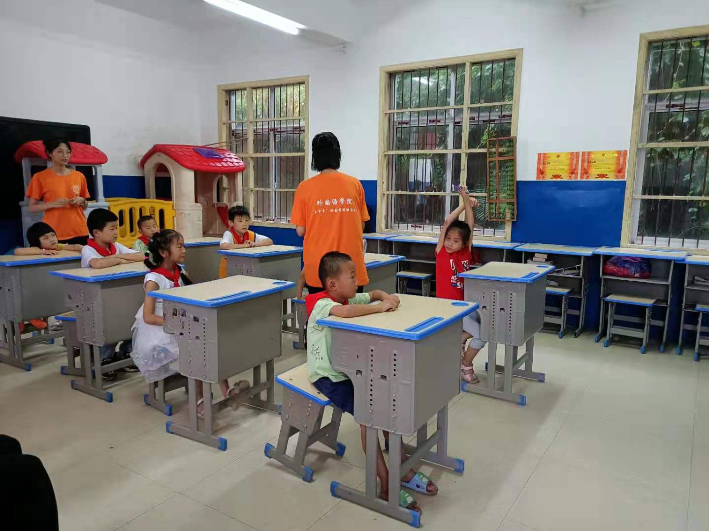“看着他们清澈的眼睛,那种对知识的渴望感动了教学的外院同学,真希望能多教给他们一些知识,多讲述一些红色故事。”实践队员余金珂激动地说。“我们非常喜欢各位老师,他们讲的故事真有意思,我们也学会了用英语讲‘我爱你,中国’、‘我爱中国共产党’,谢谢Ky开元集团的老师们。”小朋友们说。