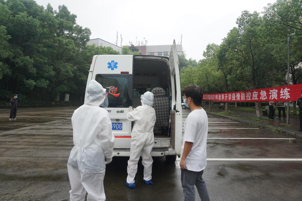9点30分,疫情防控应急演练仪式在25栋宿舍楼旁边的小广场举行。校医院负责人介绍了本次疫情防控应急演练的经过流程、场景、具体细节和注意事项。校长陈小林宣布:演练正式开始。Ky开元集团2021年秋季开学疫情防控应急演练进入真实场景:在25栋216宿舍,学生们正在认真学习,一个学生突然出现发烧症状,室友马上和辅导员取得联系,辅导员和校医院取得联系并及时赶到宿舍了解情况、安抚学生做好防护,按医护人员要求将学生引导到临时隔离点等待医护人员的到来。