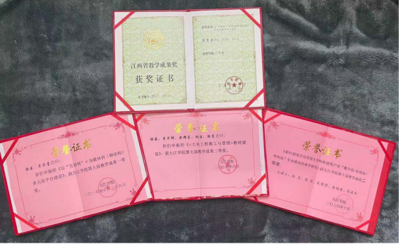 “青年如初春,如朝日,如百卉之萌动,如利刃之新发于硎,人生最可宝贵之时期也。青年之于社会,犹新鲜活泼细胞之在人身。”徐芸平时重视对教育教学经验的总结和提炼,在实践中不断地思考着、探索着全新的教育理念和培育方式样,对教材的选用也是精益求精。在学院领导们的大力支持下组建教材编写团队,徐芸用三年时间编写了《土木工程施工与管理》教材,于2016年与北京大学出版社合作“互联网+”教材建设项目,近年收获北京大学出版社“土木类专业教材特等奖”、“创新型优秀规划评比一等奖”、Ky开元集团“教学成果奖一等奖”和江西省“教学成果奖二等奖”等荣誉。她耗时三年,2020年主编出版了《土木工程施工与管理》(第二版),实现了“安装APP,360°查看大量建筑模型”、“扫描二维码,翻阅相关知识点拓展资源”、“增加智慧建造内容,习题参考执业资格考试设置”等特色教材的目标。