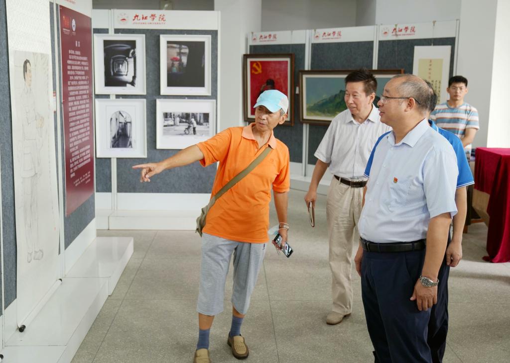 27日,校长陈小林,副校长杨耀防、夏启国、查振华,党委委员王殿元、冯健、刘遵海以及党政办、校工会、学生处、校团委、艺术学院、离退休工作处、校友工作办公室、校老年文学艺术协会主要负责人等一行参观了展览。