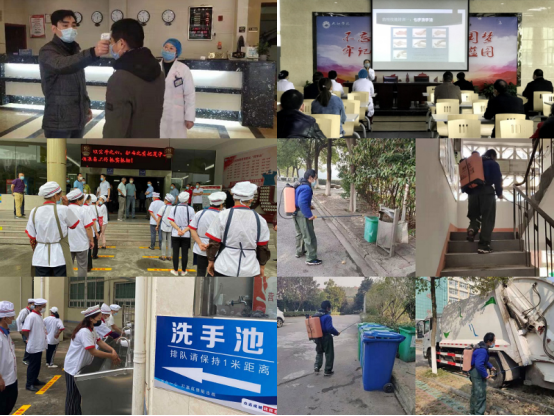 为保障校园安全,后勤处饮食服务中心深入周密部署“舌尖”安全。各食堂坚持消毒测温,分流进出口人员,张贴就餐提示,提倡打包带走方式,防止可能存在的病毒交叉传染。后勤管理处研究制定了环境卫生整治消杀、隔离管理、防疫物资储备和发放、一线人员应对与防护等疫情防控工作专项方案,明确了工作机制和工作流程,进一步构建严密科学的疫情防控体系。