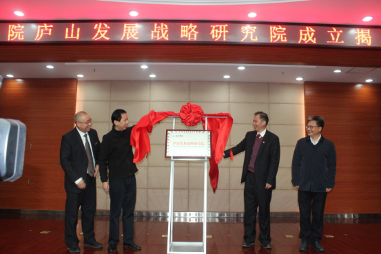 赵伟、陈小林、李小平、王斌共同为庐山发展战略研究院揭牌
