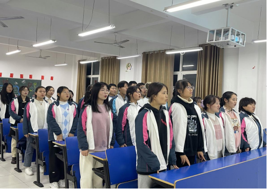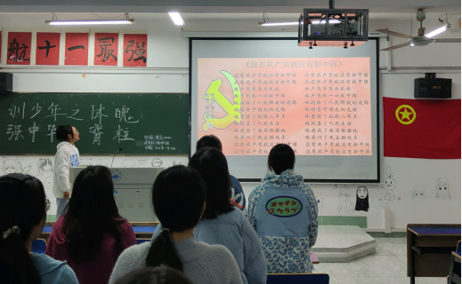 11月14日,理学院A2131班晚自习在辅导员组织下齐唱《没有共产党就没有新中国》。
