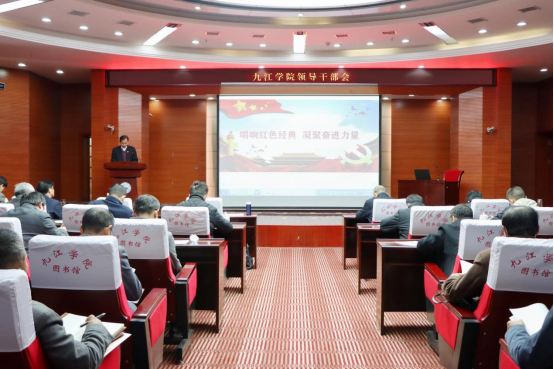 11月30日下午,学校在逸夫图书馆报告厅召开领导干部会议,专题学习江西省第十五次党代会精神。校党委书记赵伟主持会议并讲话,他强调,要把学习贯彻好省第十五次党代会精神作为学校当前和今后一个时期的重大政治任务,坚决扛起服务区域发展使命,发挥高校人才智力优势,主动对接长江经济带、鄱阳湖生态经济区等国家发展战略,为九江高标准建设长江经济带重要节点城市贡献智慧和力量。校党委副书记、校长陈小林,党委副书记魏立平,副校长王万山、杨耀防、夏启国、查振华,纪委书记李广欣,党委委员王殿元、冯健出席会议。