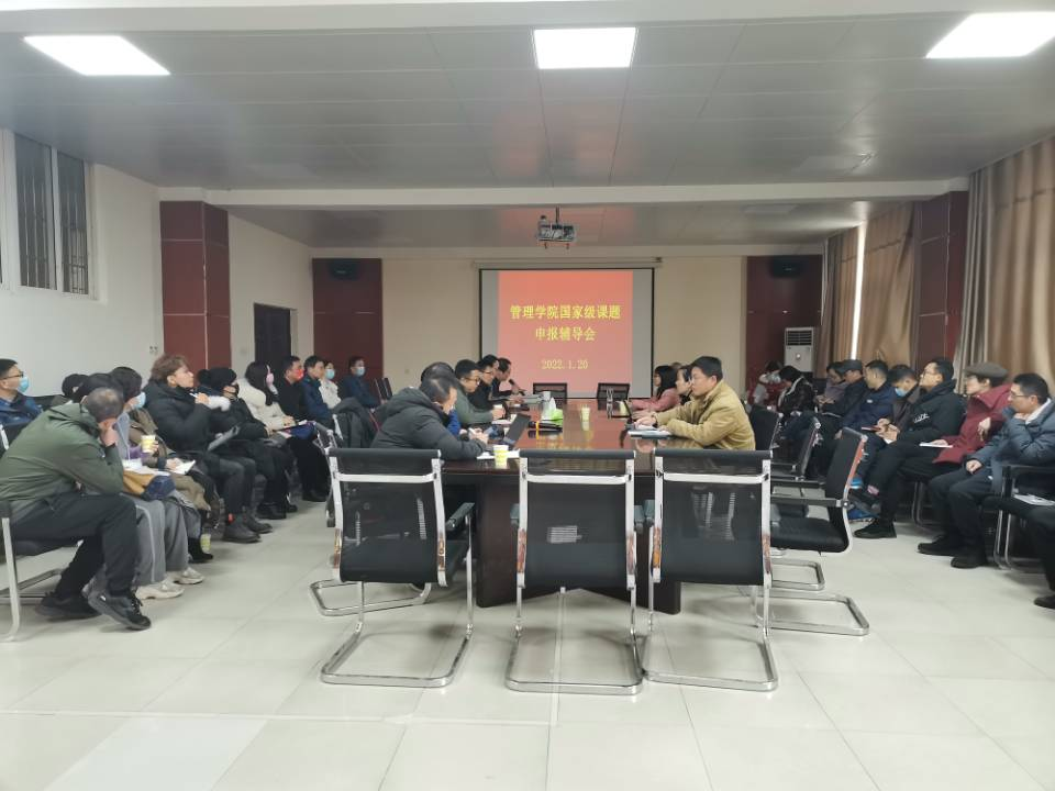 1月20日下午,为提高教师国家级课题申报的质量与水平,管理学院在立信楼504召开了2022年国家级课题申报辅导会,特邀请校长陈小林博士、张应华博士和袁德利博士作为辅导专家进行指导。管理学院负责人及博士、教授及科研爱好者们一同参加了辅导会。