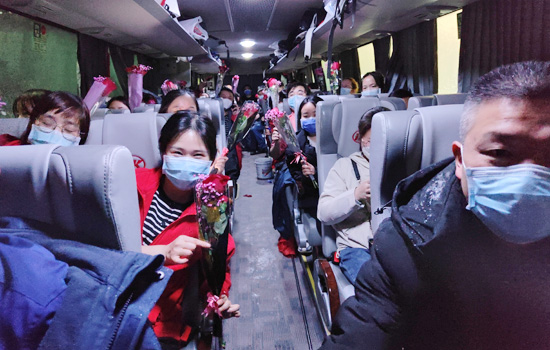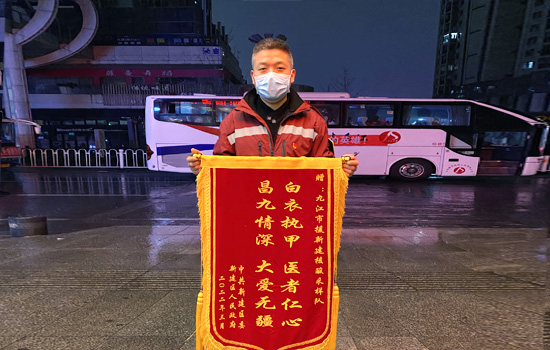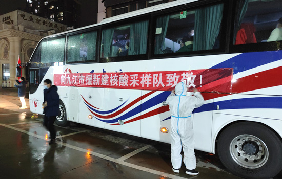 当天傍晚,南昌市新建区政府为九江抗疫队员们举办欢送仪式。警车开道、鲜花簇拥、挥手告别……江西长运的大巴车队满载着九江各地区各医院支援队伍,也满载着南昌人民对驰援医护的谢意与真情。车辆两侧悬挂着“向九江市核酸采样队致敬!”“最美的天使,真正的英雄!”“致敬,新时代最可爱的人!”等字样横幅,凌晨的冷雨中,区政府领导、此前并肩作战的社区工作人员和志愿者们、周边社区居民,送别九江医护。高规格的礼仪、暖心的话语、贴心的安排,令队员们感动不已。