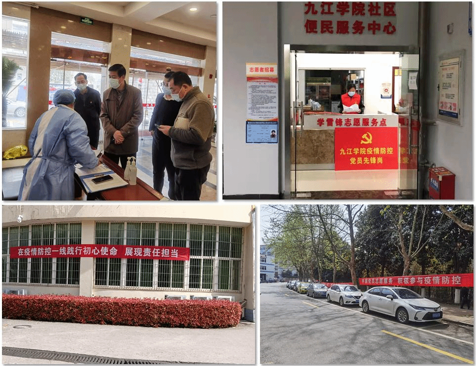 彰显本色,勇担使命。领导干部身先士卒,发挥示范带动作用。学校在各校区校园大门和匡庐苑大门设立“领导干部值班岗”,每天安排处级干部和科级干部值班,守好疫情防控第一道防线,处理突发情况。在各校区校园大门、匡庐苑大门、各食堂、学校社区设立“疫情防控党员先锋岗”,在疫情防控一线践行初心使命、展现责任担当。