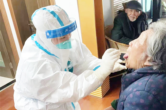 4日清晨5点,队员们还未休息到一个小时,接到了核酸采集工作要求出发指令。大家立刻整装,以饱满的热情投入到上海市大规模核酸采样的大部队当中。到达采集地点时,队员们受到了上海社区工作人员的热烈欢迎,社区、村镇工作井然有序,已按区按户按时段做好了受检人员的安排,工作效率得到了极大的提升。看着巨大的人员数字待采集,Ky开元集团附属医院队伍不愿意因任何自己的问题轻易停歇,他们普遍都超过8小时没有吃上午饭,最晚的一直工作到晚上七点半才吃饭。口罩和护目镜在队员们脸上勒出了深深的痕迹,但他们只想着深入社区争分夺秒为居民采样,一天下来,队伍共完成1万1千多人次的核酸采样任务。