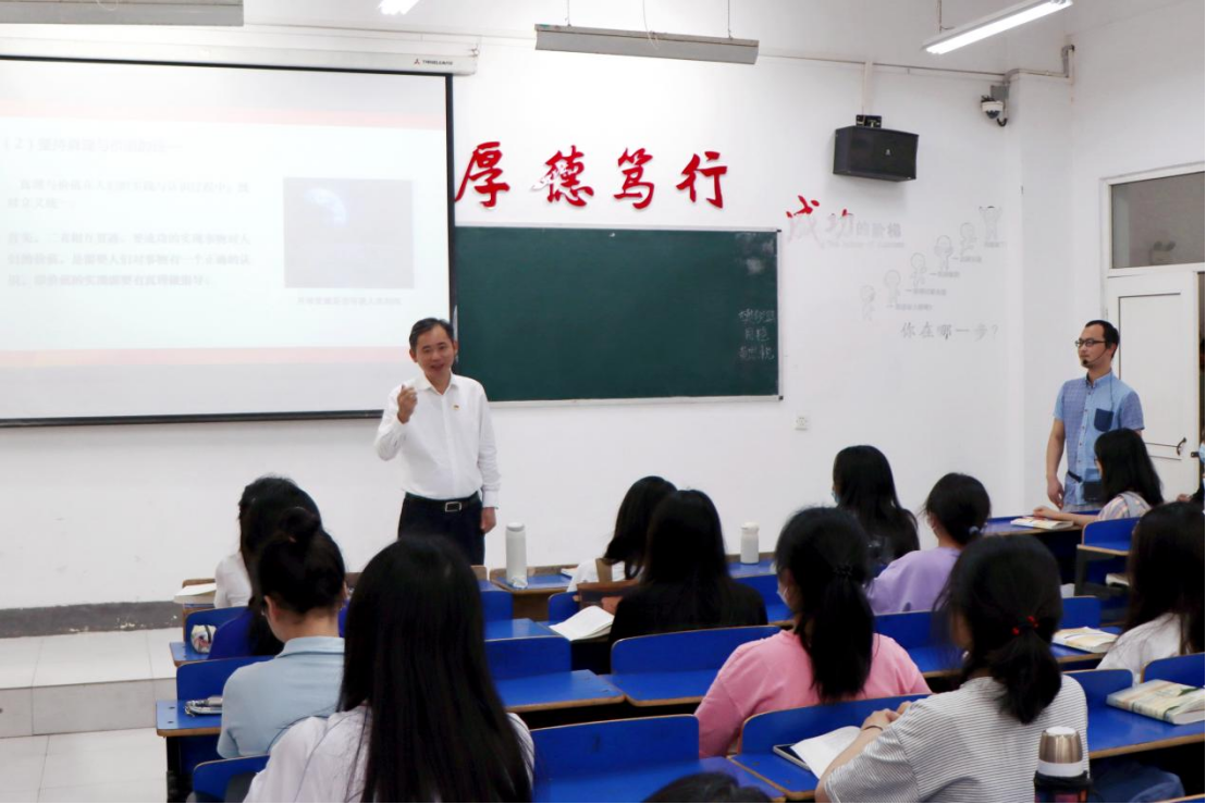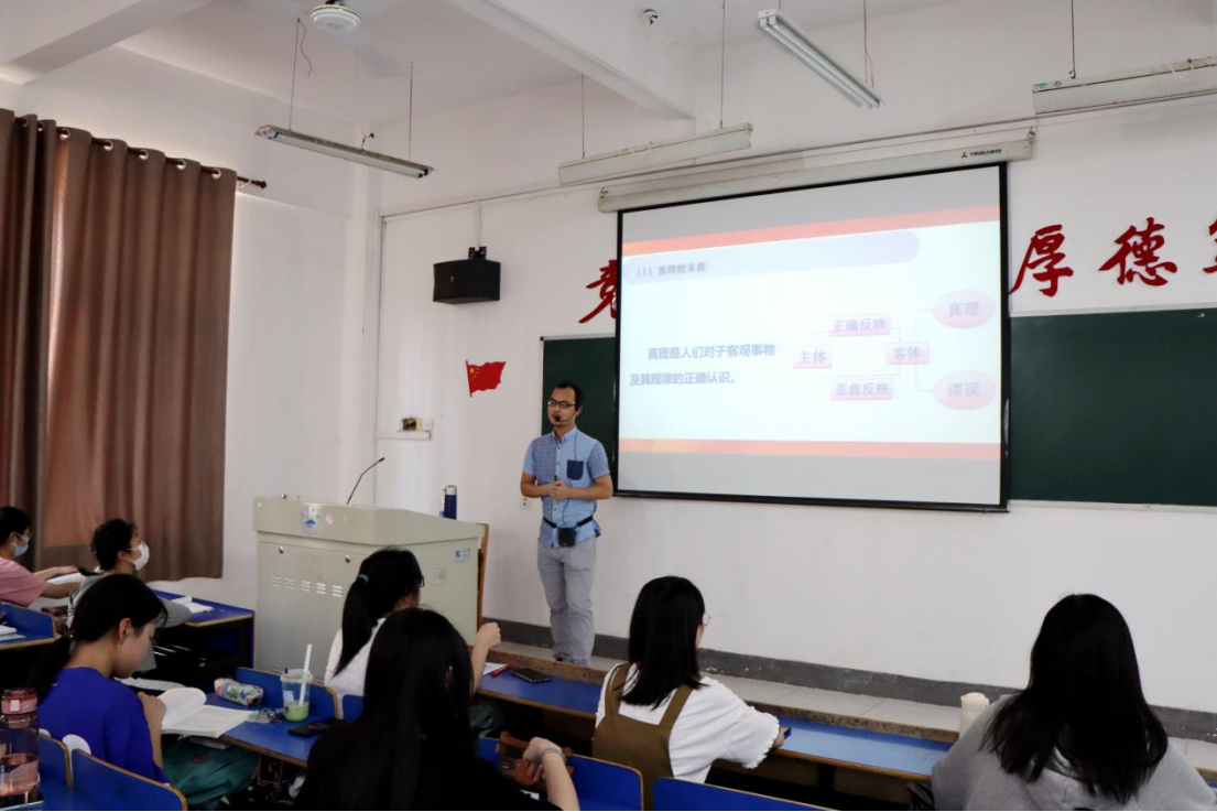 在香远楼102教室,赵伟与外国语学院A2131、A2132班同学一同听取了周春芸博士讲授的《马克思主义基本原理》课程。课堂上,周春芸博士结合通俗易懂的案例讲授了真理的客观性、绝对性和相对性;真理的检验标准,真理与价值的辩证统一等内容,引导同学们用辩证的观点看问题。