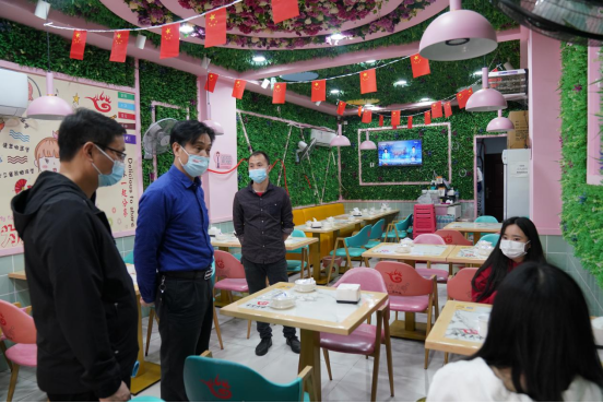 每到一处,杨耀防都叮嘱场所经营人员,当前疫情形势仍然很严峻,快递点、餐厅、超市、宿舍等外来物品集中、人员聚集,一定要加强管理,继续做好消杀记录,人员进出记录等。各场所要坚持人物同防,严把“消杀关”,对经营场所全面消杀,对外来物品及时消杀。经营场所入口处既要做好“四查一戴”的提示,也要严格执行进店程序。