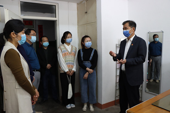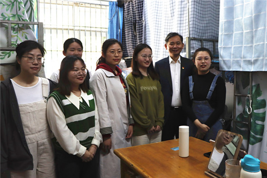 赵伟首先来到学生宿舍三栋,检查指导常态化校园疫情防控工作,慰问了疫情期间在宿舍值班的辅导员高丹阳老师和学生党员干部胡夏慧,看望了向学青年之家的备考学生,深入联系班级A1822班107和108宿舍开展座谈。学生代表、辅导员老师从青年学生的学习与思考、实践与成才、就业与规划等方面的情况进行了汇报交流。赵伟向青年学生致以节日的祝贺,对奋斗在疫情防控一线、为保障正常教科研秩序做出默默奉献的师生表示问候。班级宿舍座谈会上,赵伟认真倾听,就同学们关心的问题逐一解答指导,对考研顺利上岸的同学表示祝贺与祝愿,对选择就业的同学提出殷切鼓励,对选择考编考公的同学,分享了自己大学的奋斗和工作中的宝贵经验;鼓励大家牢记习近平总书记在中国人民大学考察时对青年大学生提出的希望,坚定不移听党话、跟党走,努力成长为堪当民族复兴重任的时代新人,坚定理想信念,坚守奋斗初心,找准自身定位,积极融入国家民族时代发展。