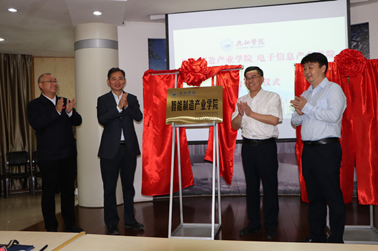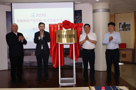 柯尊玉、赵伟、戴炜、陈小林共同为“智能制造产业学院”、“电子信息产业学院”揭牌。