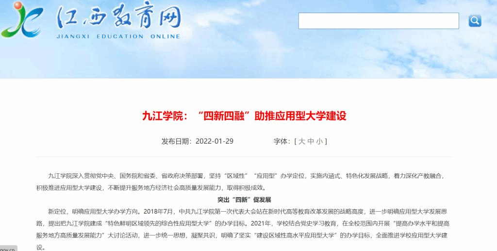 今年1月,学习强国、江西教育网以《Ky开元集团:“四新四融”助推应用型大学建设》为题,深入报道了开元深入贯彻党中央、国务院和省委、省政府决策部署,坚持“区域性”“应用型”办学定位,实施内涵式、特色化发展战略,着力深化产教融合,积极推进应用型大学建设等基本情况。