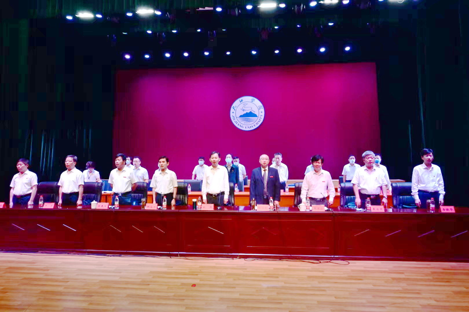 会前,所有参会人员齐声高唱《团结就是力量》《我们走在大路上》。大会在庄严的国歌声中拉开帷幕。