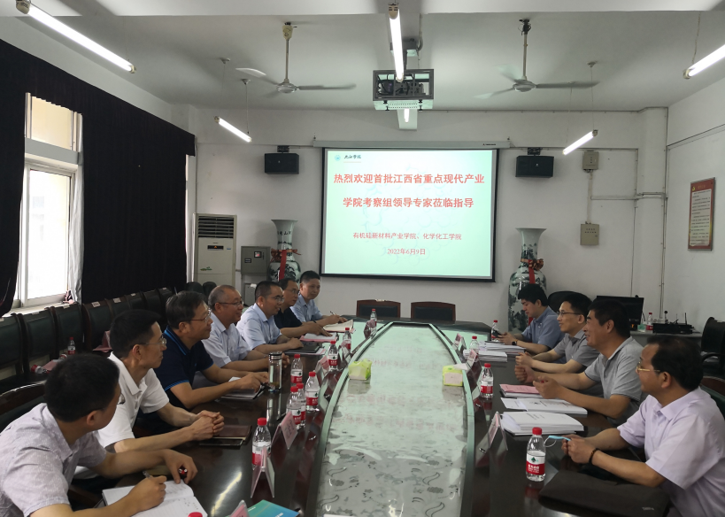 建设现代产业学院是贯彻国家有关战略要求,促进高等教育与经济社会紧密结合,培养适应和引领现代产业发展的高素质应用型、复合型、创新型人才的重要举措,为进一步遴选省级重点现代产业学院,6月9日下午,省教育厅、工信厅专家组来校实地考察有机硅新材料产业学院。专家组由江西省工信厅新兴产业处处长万钧、南昌大学朱小刚教授、东华理工大学许德如教授、江西省教育厅高教处主任柴政组成。校长陈小林、副校长严平出席汇报会。