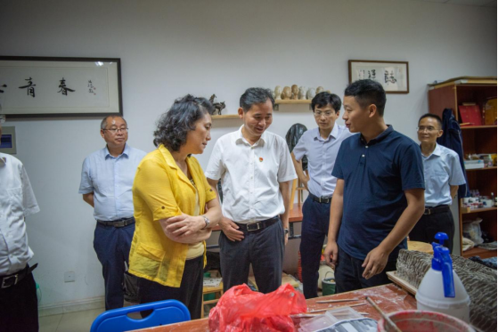 马玉玲一行还参观了开元青年艺术家吕雅明、谭丹武工作室、章新成博士工作室、万蕾老师非遗竹编传习工作坊及艺术学院非遗陈列馆,并与青年教师们进行了亲切交谈。