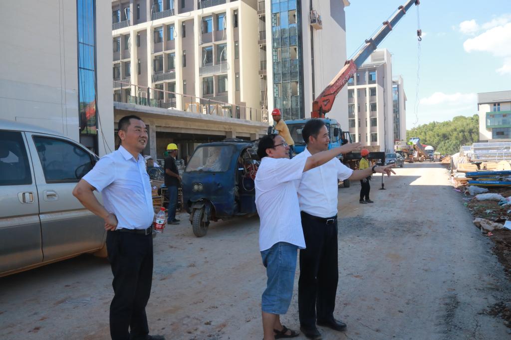 会前,在赵伟、党政办和理学院负责人的陪同下,姚裕贵实地参观了开元第二附属医院、紫薇园等建设现场和丹枫园北区体育馆等地,在沙盘前详细听取了校区规划建设情况的介绍。他对学校发展、新老校区规划等教育资源整合建设情况给予了高度评价。