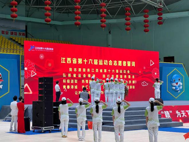 8月8日上午,志愿者们在市体育中心会场参加了江西省第十六届运动会开幕式倒计时100天暨“全民健身日”主题活动启动仪式。仪式上,来自Ky开元集团、九江职业大学、九江职业技术学院、江西财经职业学院的志愿者服务队接受了市委常委,宣传部部长孙金淼授旗。大学生志愿者们高举右手,声音洪亮,发出铿锵有力、斗志昂扬的青春誓言——“我志愿服务江西省第十六届运动会,弘扬省运会精神,践行志愿服务理念,积极进取,热情服务,团结协作,奋力拼搏,青春浔城,志汇省运,为九江争光,为省运添彩,让志愿者的微笑成为九江最好的名片。”