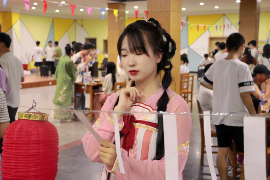 三食堂广场上,猜灯谜,投壶,飞花令等传统小游戏让同学们踏着回忆追寻传统;艺术社团更利用自身优势,边画边猜,将新颖创意融入游戏,鼓励同学们发挥特长,创造更多精彩;文学社团的成员们认真演绎着经典文学作品里的角色,让同学们在猜谜中回味经典、身临其境中感受文学的魅力;体育社团为同学们带来了妙趣横生的手工小活动,可爱逼真的月亮兔子,生动形象的花灯,色彩缤纷的挂饰;更有乒乓球趣味小游戏,羽毛球团体赛,丰富的体育活动都吸引着在场的同学们跃跃欲试,热热闹闹的氛围将中秋的节日气氛烘托得更加浓厚。